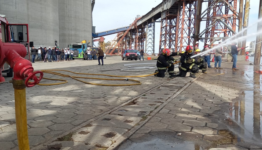 El martes 5 de octubre, el Consorcio de Gestión del Puerto de Quequén, mediante la participación del personal de seguridad portuaria, en conjunto con el personal de Terminal Quequén y la Prefectura Naval Argentina con asiento en Puerto Quequén, a cargo del Sr. Prefecto Principal Cristian Leonel Mirabete, realizó un ejercicio de simulacro de un principio de incendio a bordo de un buque y hombre al agua, en el giro 6 de la estación marítima.