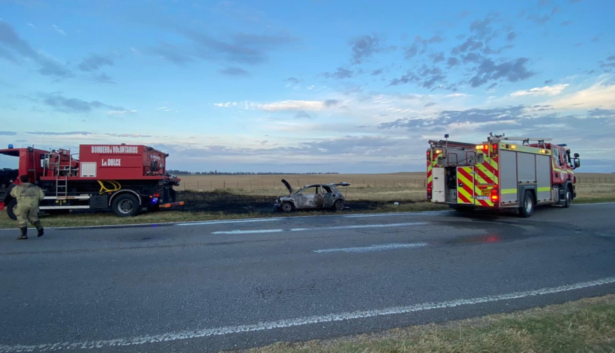 El Cuerpo de Bomberos Voluntarios de la localidad de La Dulce informó sobre la labor que tuvo que desarrollar durante el incendio de un vehículo en ruta provincial 86, altura del kilómetro 50, muy cerca del cruce de esa comunidad del interior del distrito de Necochea.