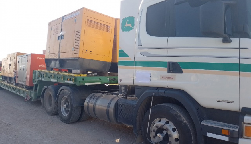 Cuando el personal policial se encontraba en la espera de la orden de allanamiento presentada por la Provincia de Neuquén es que se observa que se retira de la quinta un camión Scania cargado con ocho grupos electrógenos.
