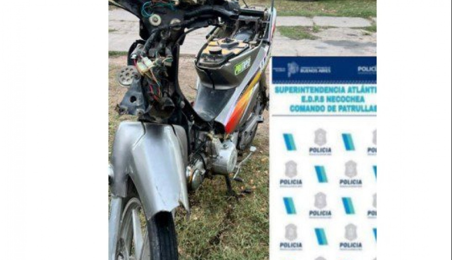 La Policía dio cuenta que un vecino llamó a efectivos cuando observó a dos sujetos que dejaban una moto en un terreno baldío. Cuando los policías arribaron a la zona de calles 71 y 80, comprobaron la veracidad del llamado y observaron entre los pastos, una moto marca Guerrero modelo Eco110 color gris sin patente, colocada con faltante de cachas frontal, asiento, y dañada en plásticos.