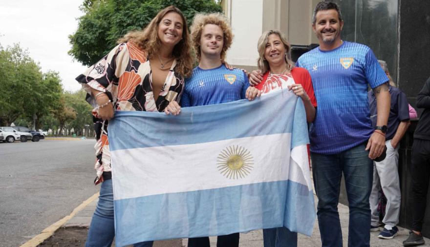 Acompañado por su familia y por su entrenador y a la vez técnico de la Selección, Marcos Bertone, Nico recibió la bienvenida en la comuna de parte de la secretaria de Desarrollo Humano y Políticas Sociales, Sandra Antenucci; como así de la directora de Deportes, Guadalupe Hernández. Momentos después también se sumó al saludo el director de Discapacidad, Gastón Boldrini. Los funcionarios expresaron el saludo del Intendente Arturo Rojas, quien se encuentra fuera de la ciudad.