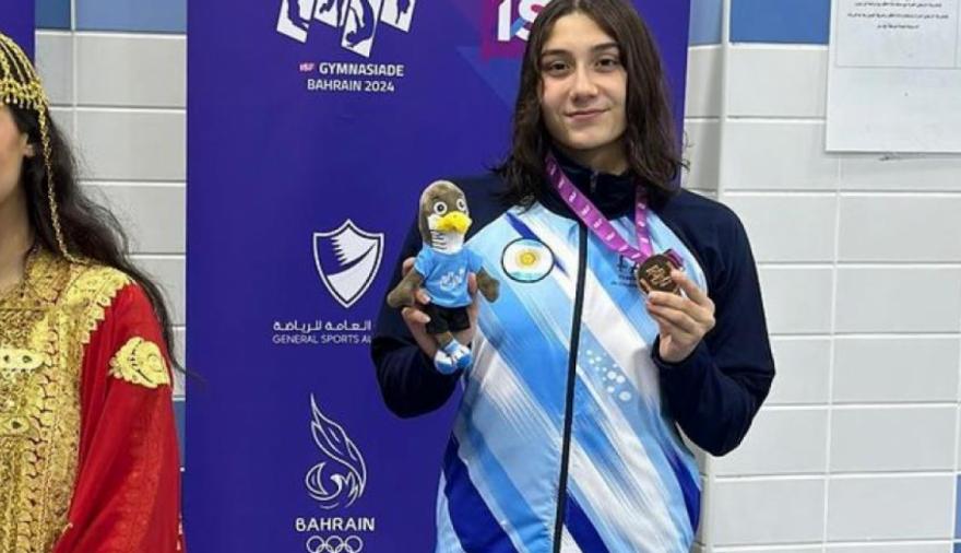 La necochense Guadalupe Angiolini volvió a conseguir un podio en la natación internacional al colgarse la medalla de bronce en la Gimnasiada, el mayor acontecimiento deportivo escolar del mundo, cuya 18° edición se esta desarrollando en la ciudad de Manama, capital de Bahréin.