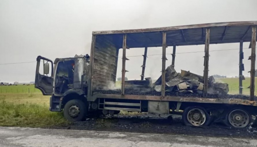 Al llegar al lugar, el personal de Bomberos de Lobería encontró el vehículo completamente envuelto en llamas, lo que complicó las tareas de extinción. Pese a los esfuerzos, no se pudo evitar que el fuego consumiera la totalidad del camión, un Volkswagen modelo 17250, dominio PFK 635.