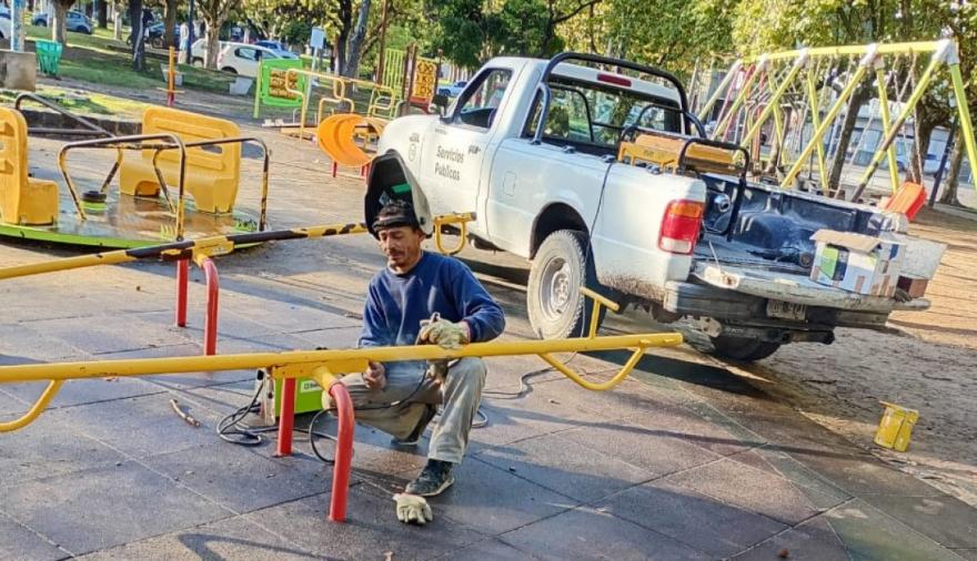 Las tareas en marcha incluyen reparación de los juegos dañados y trabajos de pintura, adecuación de sectores de descanso y mejoras en la iluminación y accesibilidad. Estas intervenciones se realizan con recursos municipales.