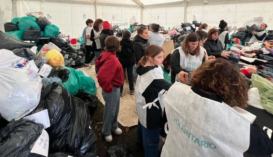 A lo largo del día, el clima jugó con todas las cartas: sol, viento, lluvia. Pero nada detuvo la voluntad colectiva. Más de 40 voluntarios trabajaron sin descanso clasificando las donaciones que comenzarán a entregarse este lunes en los distintos espacios que recibirán la ayuda.