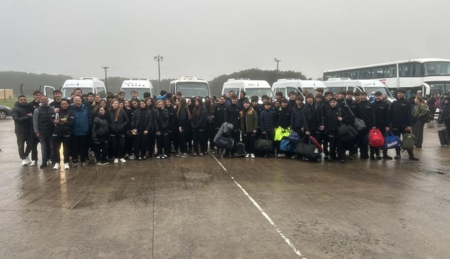 En una mañana gris pero cargada de entusiasmo, el Polideportivo Municipal “Edgardo Hugo Yelpo” se colmó de jóvenes, profesores y familias que despidieron a la masiva delegación de Necochea rumbo a las finales de los 34º Juegos Bonaerenses.