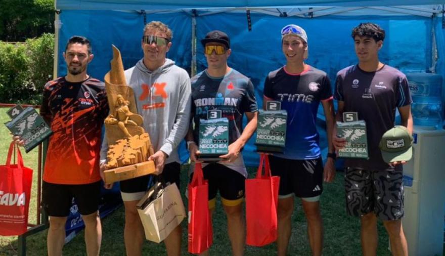 Agostini completó el recorrido —750 metros de natación en el Río Quequén, 20 kilómetros de ciclismo y 5 kilómetros de pedestrismo por avenida Jesuita Cardiel y avenida 58— en 59 minutos y 18 segundos. Alan Ibañez, de Tandil, llegó segundo con 1 hora y 39 segundos, mientras que el tercer puesto fue para otro local, Lucas Cossio, con 1 hora y 54 segundos. También tuvieron actuaciones destacadas Santiago Cataldo (Tandil), cuarto, y Tomás Benjamín González (Grand Bourg), quinto.