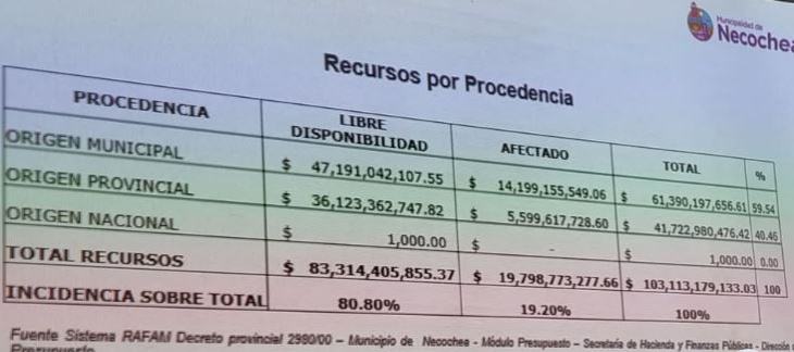 El dato surge del detalle de origen de los recursos que compondrán el Presupuesto de Gastos y Recursos 2026, estimado en $103.113 millones, que será elevado en los próximos días al Concejo Deliberante para su tratamiento. La composición presupuestaria refleja un escenario contundente: