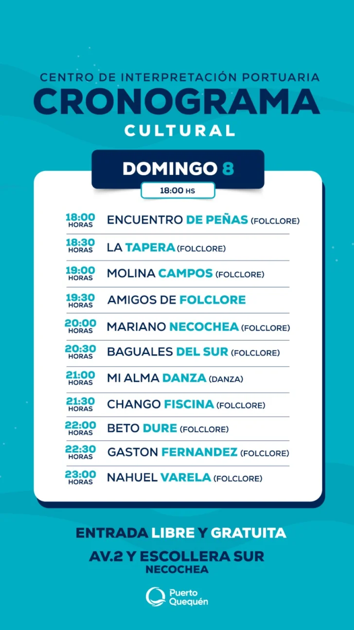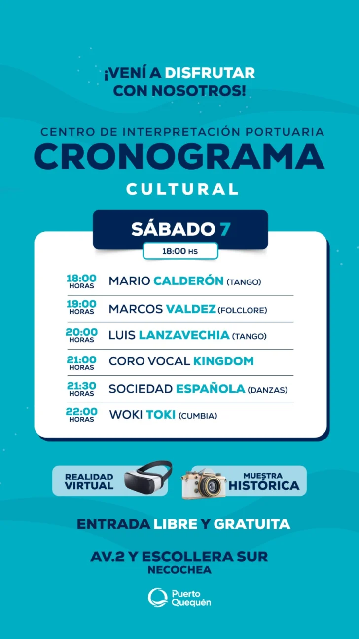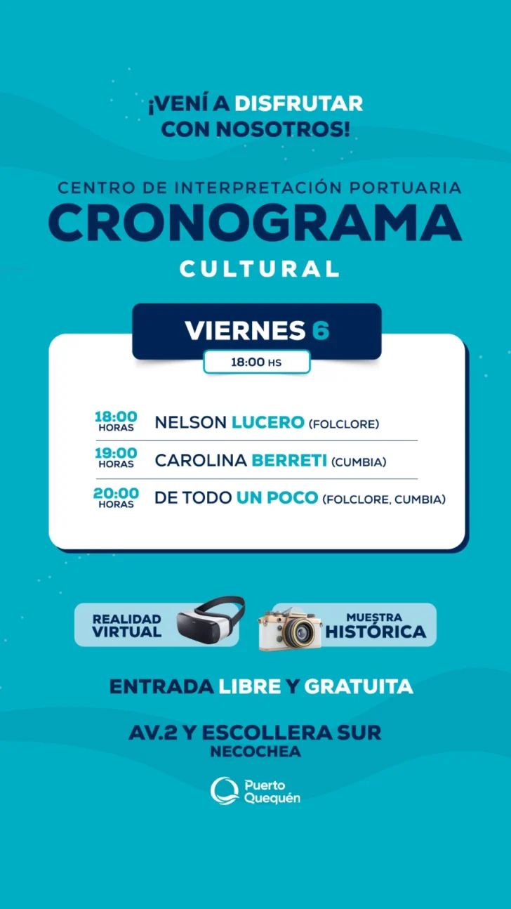 La propuesta combina música en vivo, danza, peñas, pintura al aire libre y experiencias de realidad virtual vinculadas al ámbito portuario, consolidándose como uno de los planes culturales del verano en la región.