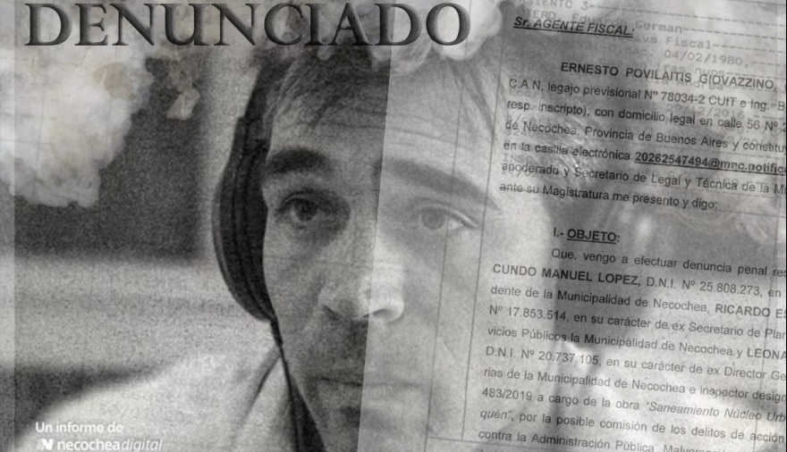López se fue pero sigue dando que hablar. El gobierno municipal, encabezado por el intendente Arturo Rojas, denunció al ex intendente Facundo López por los posibles delitos de defraudación contra la Administración Pública, Malversación de Caudales Públicos y falsedad ideológica por la obra pública denominada “Saneamiento Núcleo Urbano Necochea-Quequén”, obra cuyo monto pagado por Provincia ascendió a casi 10 millones de pesos en el año 2018 y que nunca se llevó a cabo. Además de López, también se encuentran denunciados por el hecho el ex Secretario de Planeamiento, Obras y Servicios Públicos, Ricardo Asiain, y el ex Director General de Obras Sanitarias, Leonardo Gaitán.