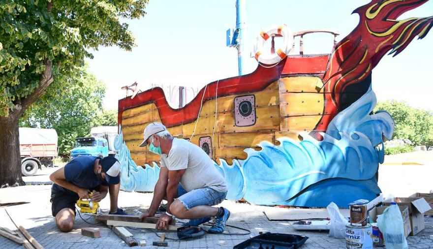 En la Plaza Dardo Rocha, Cultura trabaja a pleno para el homenaje que se le hará a este acontecimiento cultural reconocido en Latinoamérica y en el marco de su 60º edición, que tendrá lugar entre el 13 y el 20 de febrero. El laberinto y el barco pirata ya se empiezan a dejar ver en su armado, mientras que el lunes se comenzará a colocar la iluminación