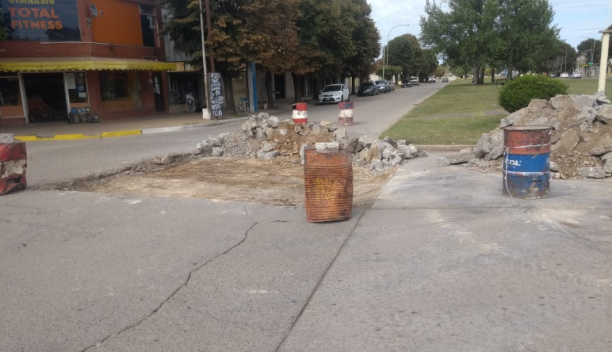 En esa intersección de la ciudad se está llevando adelante una tarea de bacheo en un espacio de importantes dimensiones. Allí se retiró el pavimento dañado, se limpió la zona y se colocó el nuevo material, el cual luego deberá dejarse secar antes de habilitarlo al paso de vehículos.