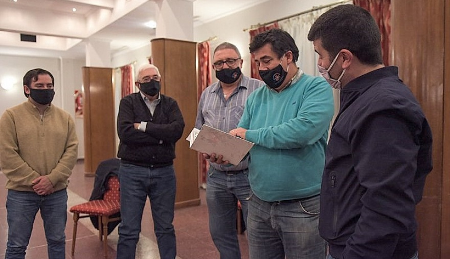 Los integrantes de la comisión informaron como se viene desarrollando la actividad de la Sociedad Española durante la pandemia, hablaron de unos expedientes que tienen en la municipalidad para resolverse, ofrecieron las instalaciones para realizar actividades en beneficios de la comunidad y entregaron una placa con el logo de la Sociedad Española, idéntica a una placa entrega al Rey de España en su visita a nuestro país años anteriores.