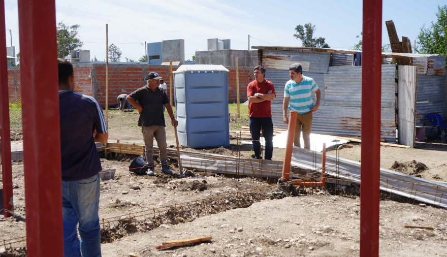 A continuación, el subsecretario explicó que “una vez que esté llena la platea (trabajo que estaba previsto comenzara en la mañana de este viernes, pero se vio demorado por el mal clima) van a empezar con los tabiques de división, que es todo construcción en seco”.